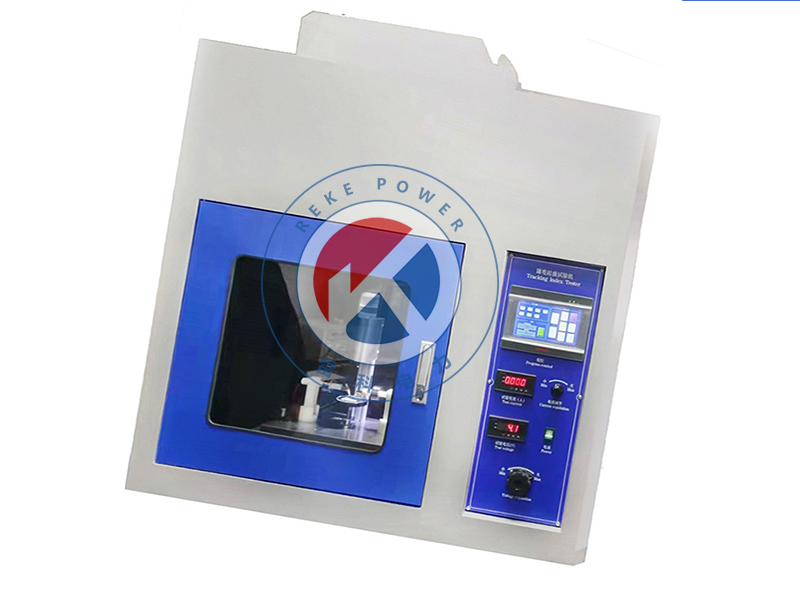漏電起痕試驗(電痕化指數(shù)試驗)是在固體絕緣材料表面上,在規(guī)定尺寸( 2mm×5mm ) 的鉑電極之間,施加某一電壓并定時 (30s)定高度(35mm) 滴下規(guī)定液滴體積的導(dǎo)電液體(0.1%NH 4 CL) ,用以評價固體絕緣材料表面在電場和潮濕或污染介質(zhì)聯(lián)合作用下的耐漏電性能,測定其相比電痕化指數(shù) (CT1) 和耐電痕化指數(shù) (PT1)。
